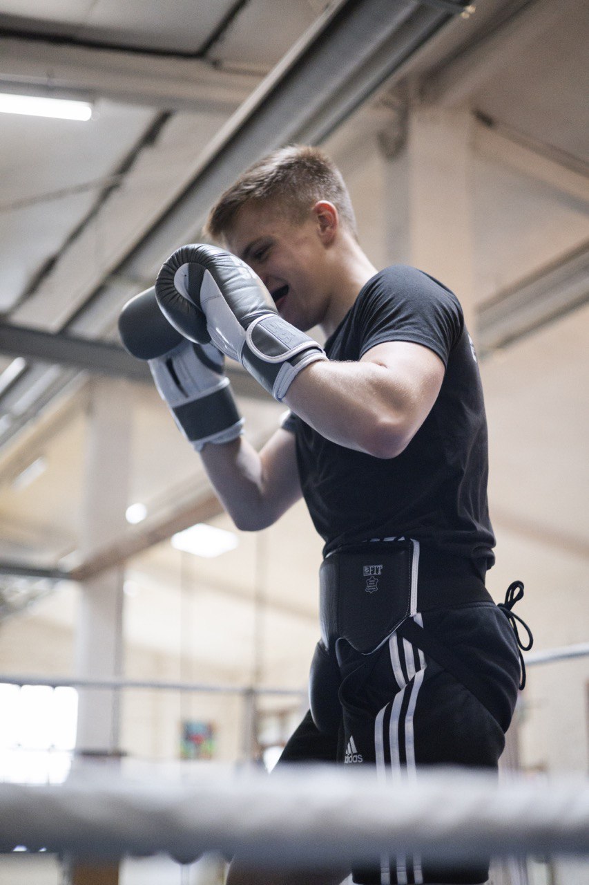 Wie auf Bild zwei zu sehen, sind in diesem Set die Paffen Sport ProKlett grau enthalten, der KiboFight Kopfschutz sowie die Paffen Sport Bandagen und Zahnschutz.